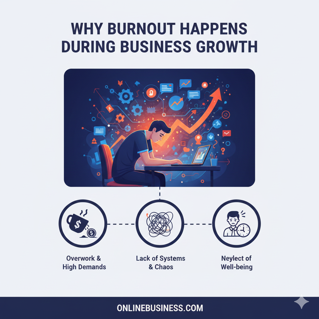 Many online businesses don’t fail because they lack demand—they fail because founders burn out while trying to do everything themselves. Growth brings complexity, decisions, and pressure. Without the right approach, scaling turns success into exhaustion. This article explains how to scale an online business sustainably, what usually causes burnout during growth, and how beginners can grow income while protecting time, health, and motivation.